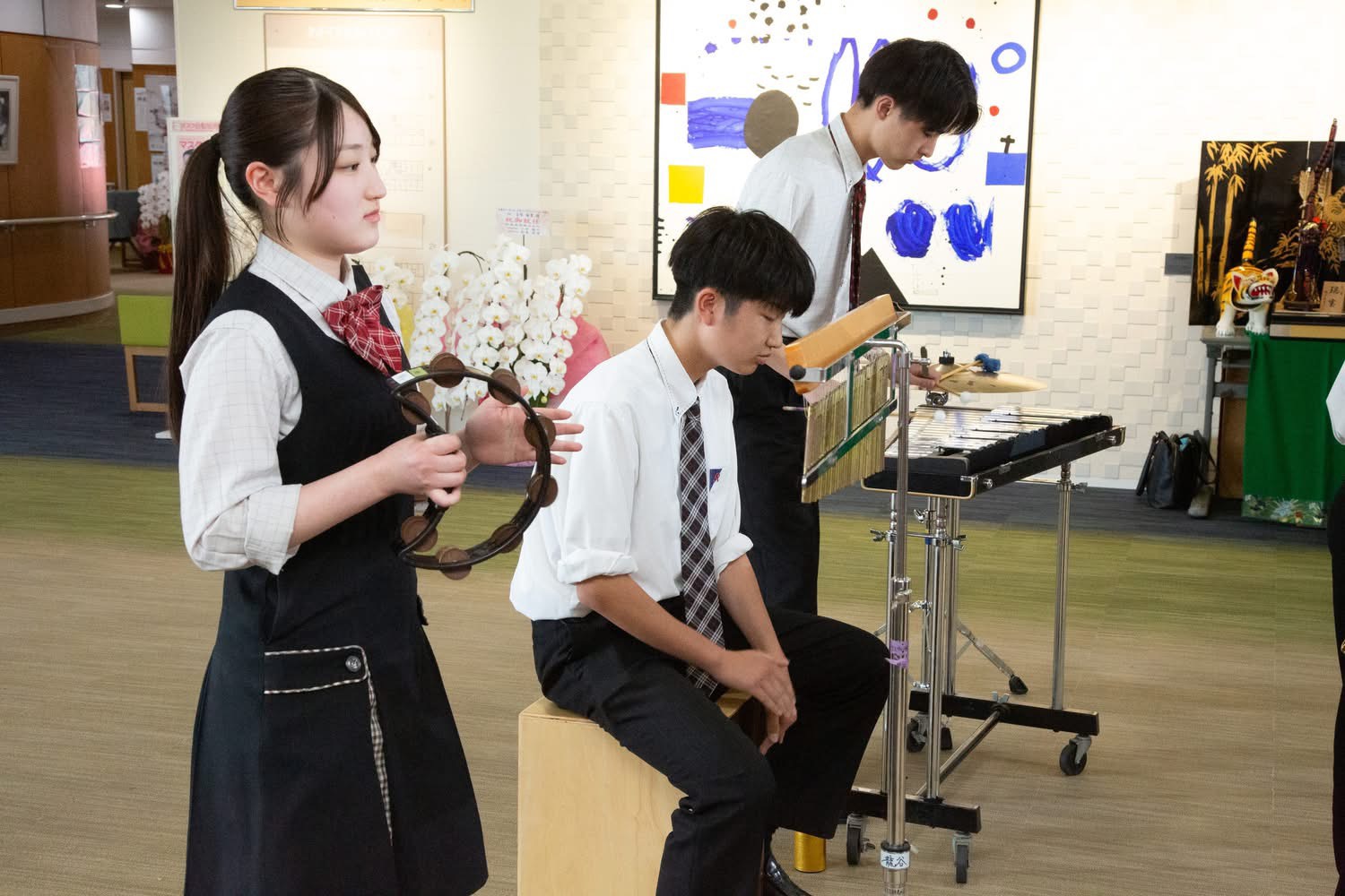 いろんな珍しい楽器の説明や音色の紹介も生徒さんで上手におこな