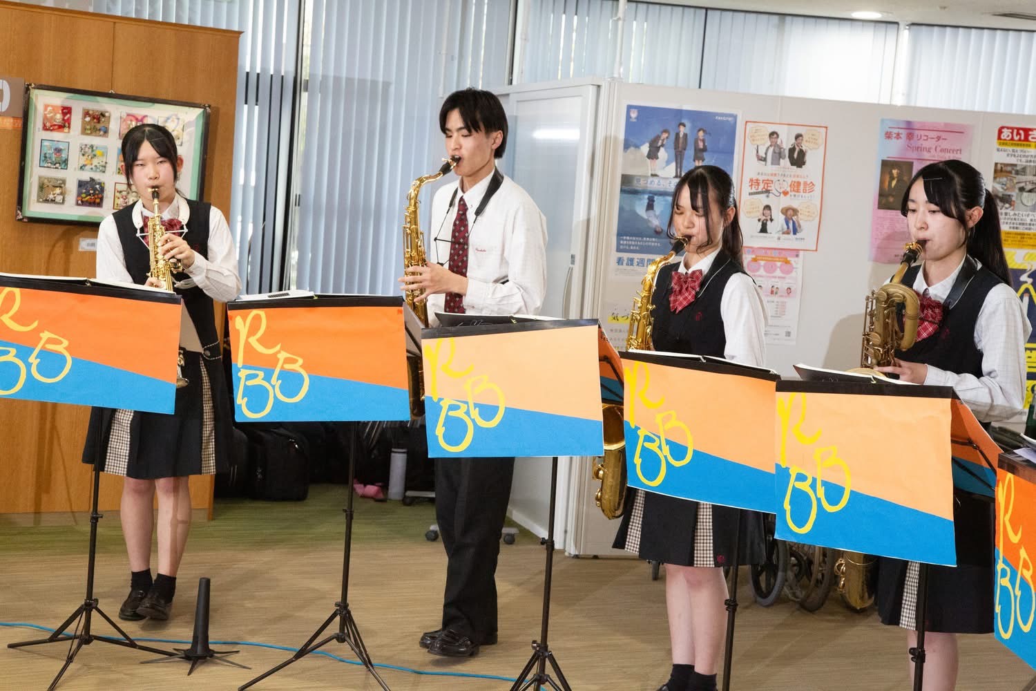 4月16日のロビーコンサートは龍谷高校吹奏楽部の皆さんでした!2024年12月にいらしてくださったのですが、その時に吉原麻里院長がインフルエンザで寝込んで聞けなかったので…また来て欲しいと熱望して、2回目の出演でした。